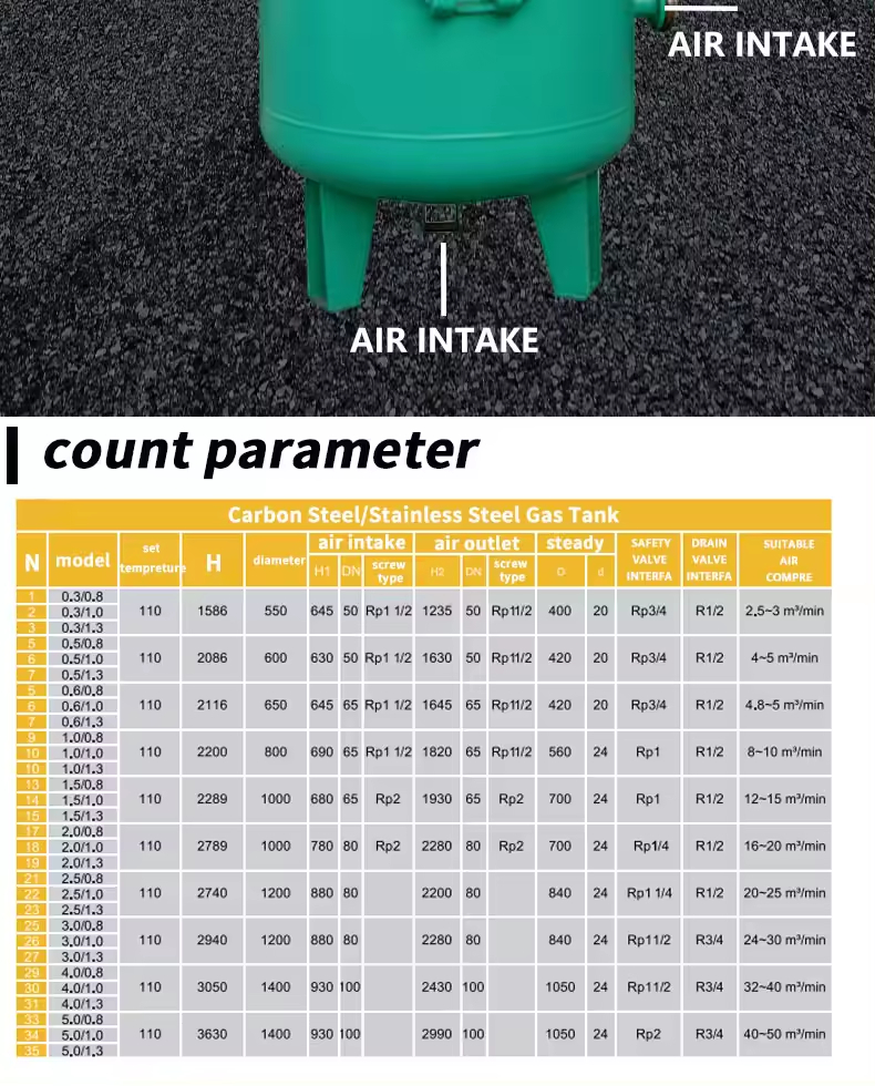 Mikovs Air Storage Tank Gas Storage Tank 300L 600L 1000L 1500L 2000L 3000L 5000L 8-13bar for Screw Air Compressor