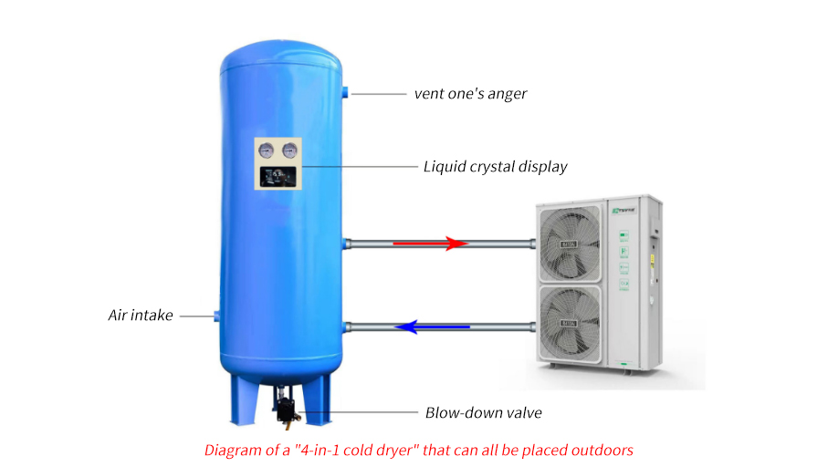 The composition of the split type cold dryer (meeting all outdoor placement) has multiple advantages: