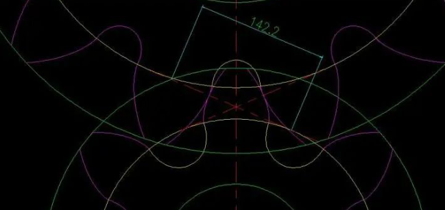 The equidistant curve of the purple extended epicycloid in the root part of the above picture is the tooth profile after root cutting. How far will the root part of a gear be undercut to affect its use? This is determined by the relative movement of the tooth top of the other gear and the strength reserve of the tooth root of the gear. If the tooth top of the mating gear does not mesh with the undercut part, the two gears can rotate normally, (Note: Undercut Part of it is a non-involute tooth profile, and the meshing of an involute tooth profile and a non-involute tooth profile is usually not conjugated in the case of a non-specific design, that is, to interfere).