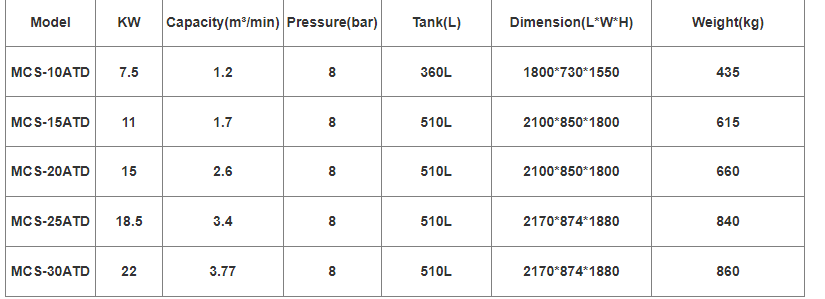A: One year for the whole machine and two years for screw air end, except consumable spare parts.